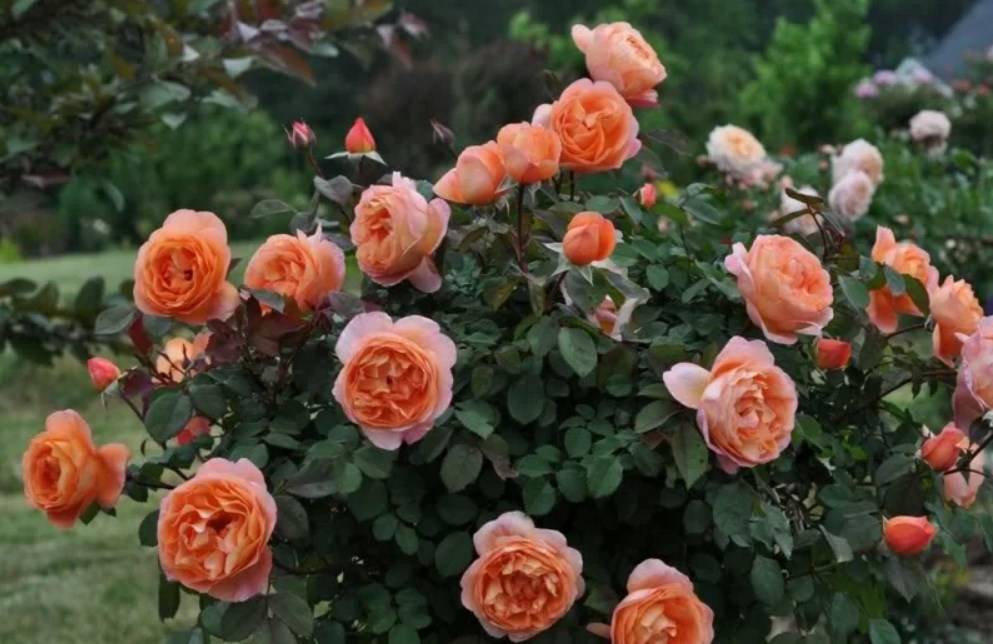 Belukar dengan mawar besar warna persik kaya. Direka untuk tumbuh dalam keadaan iklim yang tidak baik, mereka dianggap sebagai salah satu tanaman yang paling tahan lasak.