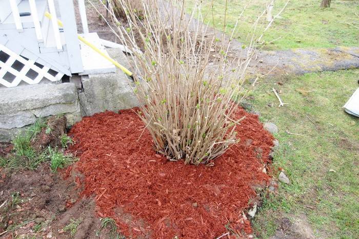 - pada akhir, lingkaran periosteal ditutup dengan mulsa, yang terdiri dari serpihan kayu, kulit kayu atau gambut. Dahan serbuk gergaji dan cemara juga menjalankan tugas dengan baik.