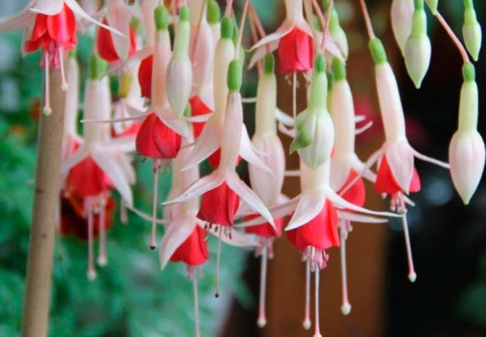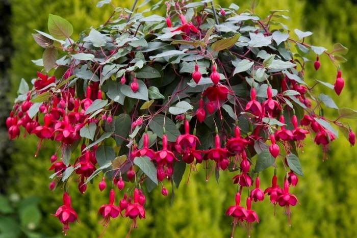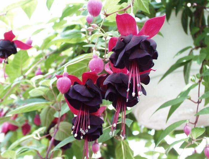 Met de juiste zorg bloeit deze plant van lente tot herfst. Fuchsia-bloemen zijn talrijk.
