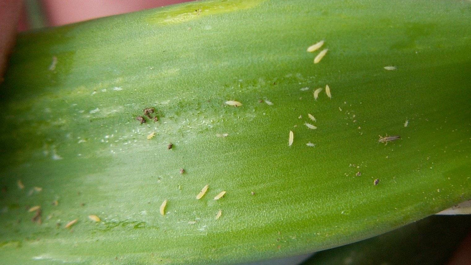 Понякога листни въшки се появяват на орхидеи. Може да се открие при нормална проверка, това са малки зелени насекоми. За да се отървете от тези вредители, използвайте сапунен разтвор. За целта разтворете 100 g сапун за пране в 1 литър топла вода. Сместа се напръсква върху растенията.