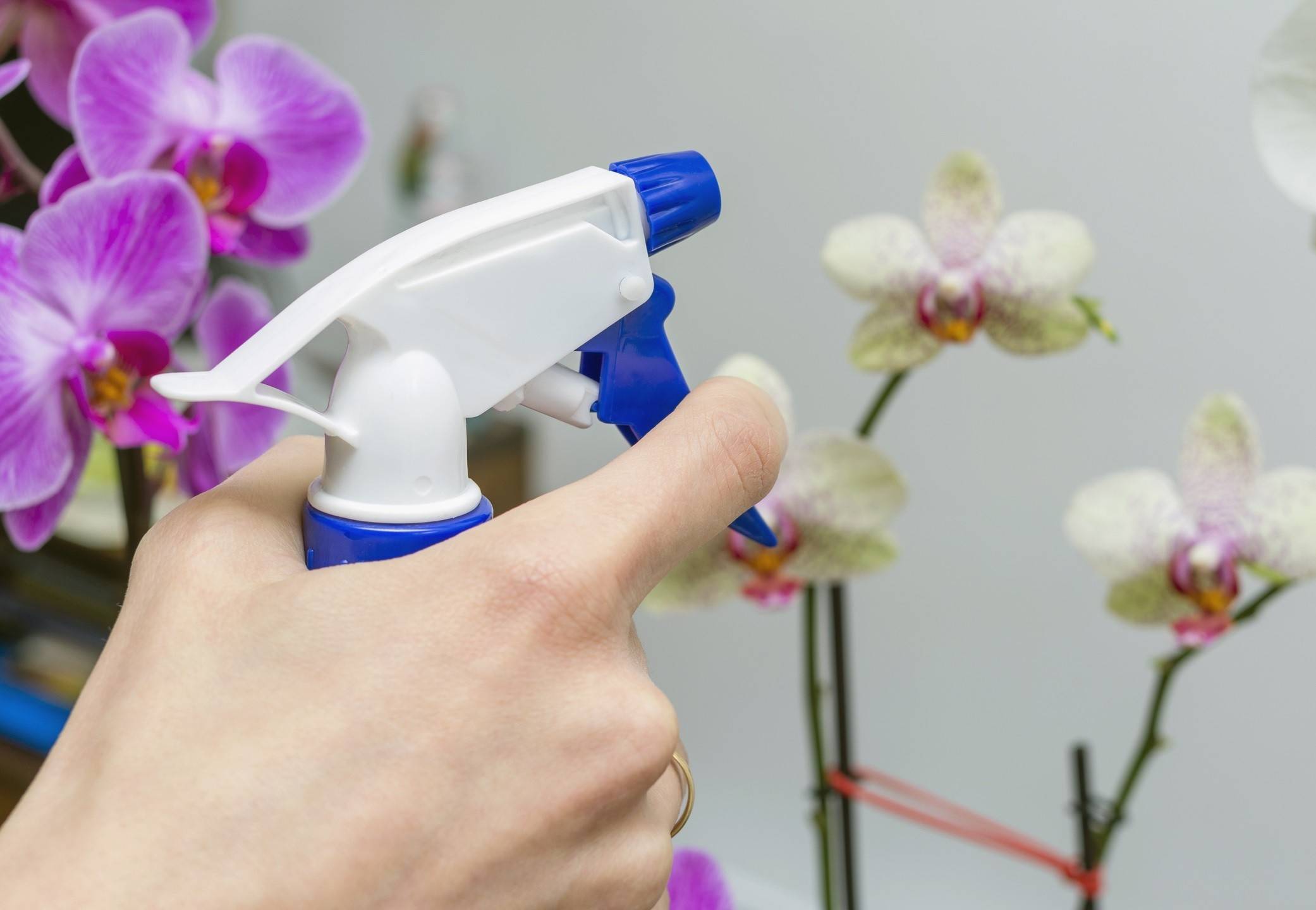 Ако цветето се отглежда по открит начин без почва, може да се използва пръскане. Това ще изисква бутилка спрей. С негова помощ се напояват отворени корени отгоре.