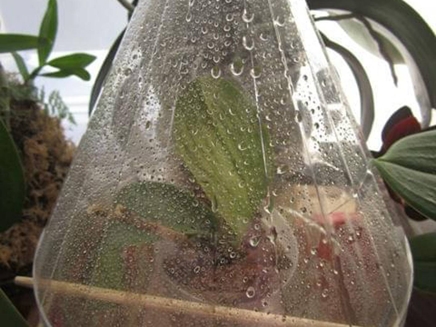 Преди издънката да пусне корени и да се приложат стандартни методи за грижа за орхидеите, трябва да се осигурят специални условия за младото растение.