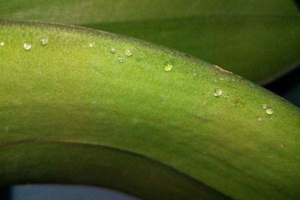 - редовното преливане води до концентрация на влага в почвата и различни части на растението. Прекомерното изобилие води до факта, че не се задържа вътре в цветето и се освобождава през порите в листата. Капките са само леко лепкави, съдържат минимално количество захари;