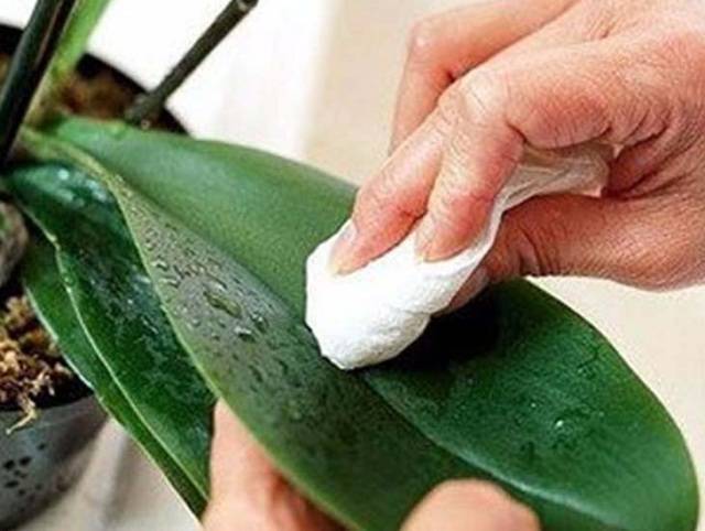 - почистването от прах и предотвратяването на колонизацията на вредни насекоми включва избърсване на листата с влажен памучен тампон или редовно пръскане.