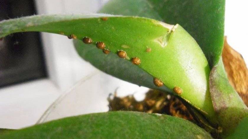 Ако по листата започнаха да се появяват тъмни израстъци, това означава, че растението е нападнато от скално насекомо. Младите индивиди могат да се видят само с лупи. Можете да се отървете от вредители с фитоверм или актеллик. Повторете процедурата за обработка се изисква след една седмица.