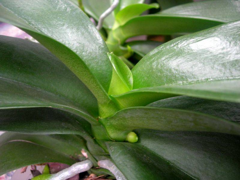 Признак за образуването на цветна издънка е появата на растяща зелена пъпка в синуса. Има остър край. Нарастващата издънка показва, че орхидеята е в етап на активно развитие.