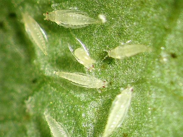 - белокрилка. Под негово влияние растението отслабва и бързо изсъхва. Признаците за атака включват пожълтяване на листата и постепенното й изсъхване. Ларвите на белокрилките живеят в корените и на гърба на листните пластинки;