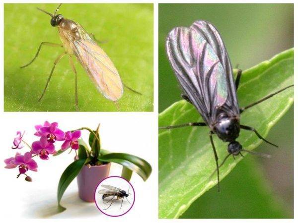 Прекаленото поливане привлича гъби, които живеят в пясъка. Ако неканени наематели са се появили на орхидеите, това означава, че останалите стайни растения също са били заразени. Полово зрелите екземпляри от гъби комари приличат на обикновени комари с минимален размер с черен цвят.