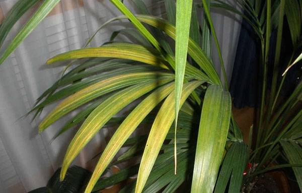 Листата на Хризалидокарпус изсъхват и пожълтяват