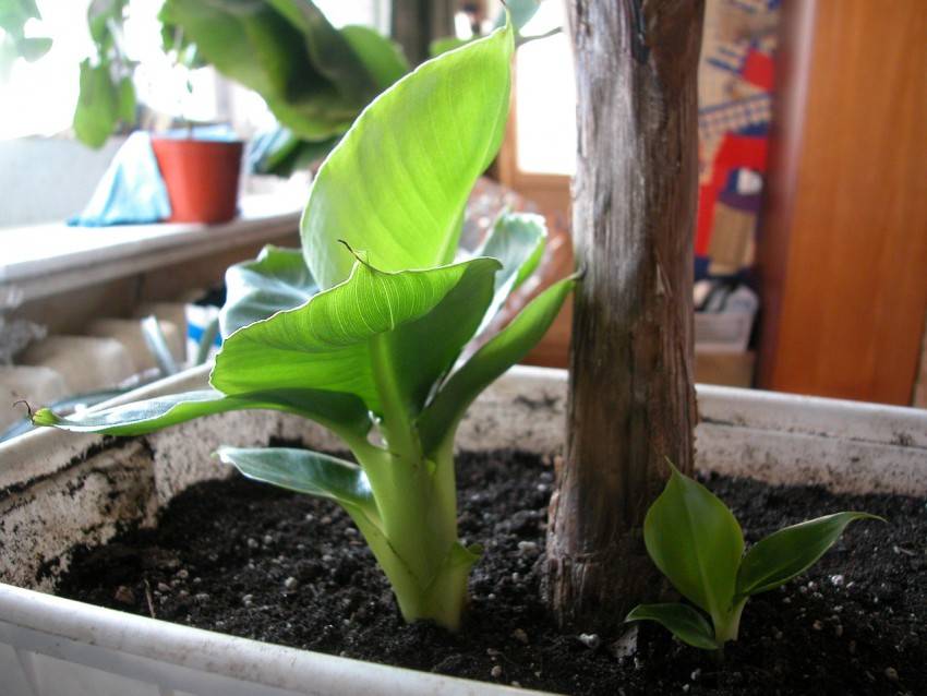 Бананът бързо се стяга в тенджерата. Поради бързия си растеж, домашен любимец може да се наложи да бъде трансплантиран дори няколко пъти в годината. Всеки път, когато саксията с диаметър е избрана с 2,5-3 см по-голяма.
