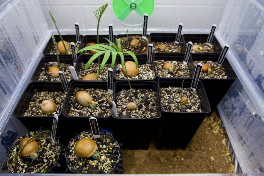 При подготовката за сеитба семената се накисват в топла вода за 1 ден, след което се поставят плитко в земята. Саксията се покрива с фолио и се поставя на топло място с температура 30-32 грама. - създава се така наречената оранжерия. Процесът на покълване отнема средно 2 месеца.