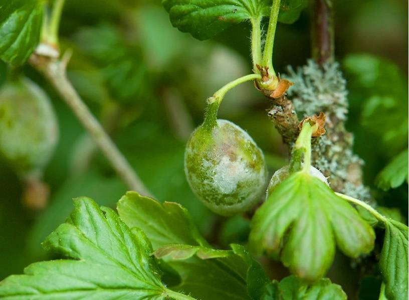 Растението може да бъде отстранено от гъбично-вирусната струпясване както по народни методи, така и чрез химически препарати. Инфекцията се характеризира с образуването на бял цвят. През пролетта и след бране на плодове, можете да го обработите с каратан.От народните методи е подходящ разтвор, приготвен от 10 литра вода и 1,5 кг пепел. С това решение цариградското грозде се обработва през лятото и пролетта.