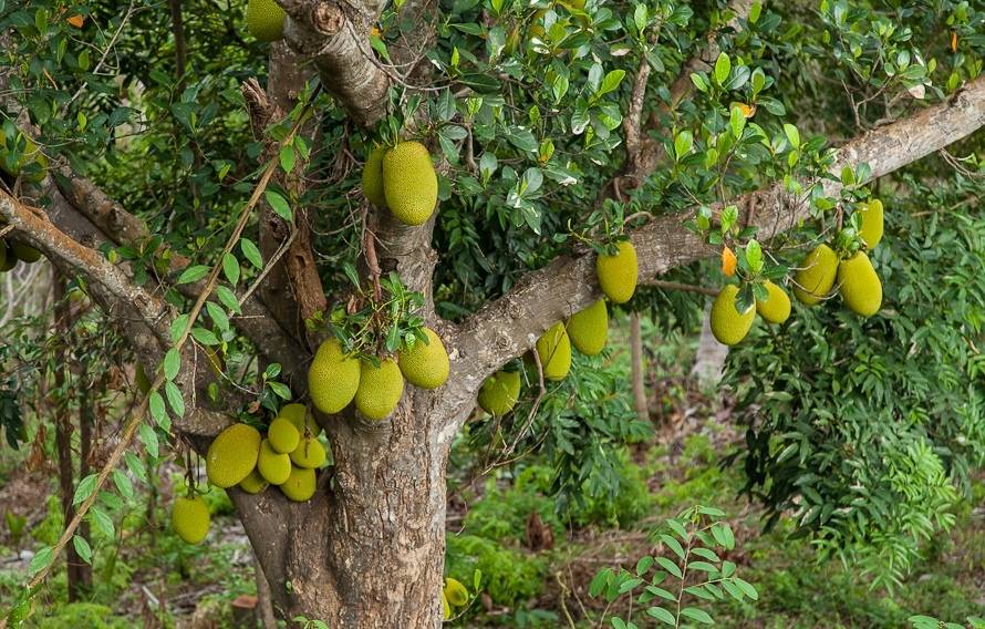 Постепенно на мястото на женските цветя се образуват яйчници, които се превръщат в големи плодове, наподобяващи надиплени пъпеши. Плодовете могат да бъдат подредени единично по клоните или да растат под формата на гроздове. Всяка част от дървото е направена от лепкав латекс, боядисан в млечен нюанс. Именно този продукт, който може да се нарече джакфрут, позволява на бедните хора, живеещи в Индия и Африка, да оцелеят.