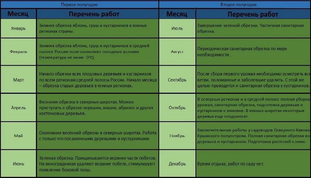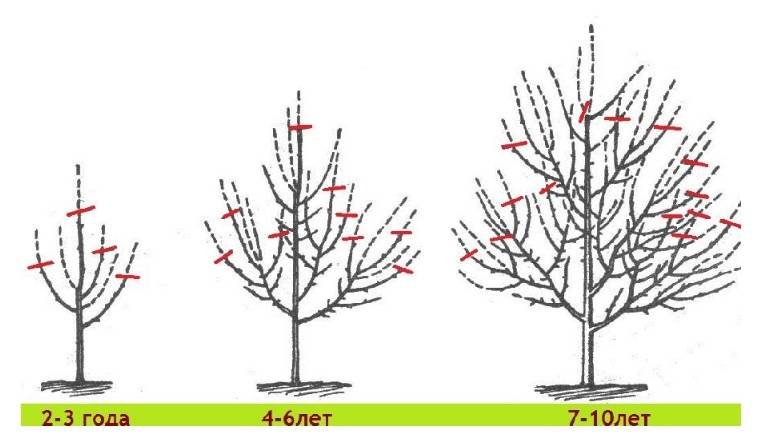 Основното изискване за подрязване на дърветата е да ги намерите в покой. Поради това често се извършва след напускане на силни студове. Следователно оптималното време е февруари-март. Първата стъпка е отрязването на плододаващите дървета и второ, младите разсад. В началото има круши и ябълкови дървета, а след това и всички костилкови плодове. Това се дължи на факта, че съществува риск от връщане на замръзване, което може да унищожи бъбреците.