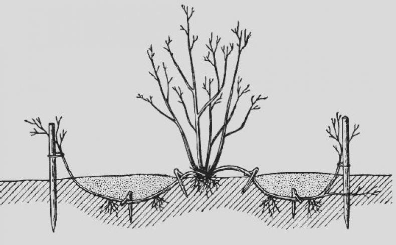 За възпроизвеждане по този начин се изкопава малък жлеб близо до храста. В него е положено бягство, прикрепено към него. През сезона мястото на контакт се полива. Когато се развият нови храсти, те се отделят от родителското растение, трансплантират се.