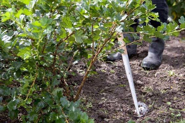 - В него се потапя разсад от цариградско грозде и корените се изправят внимателно.