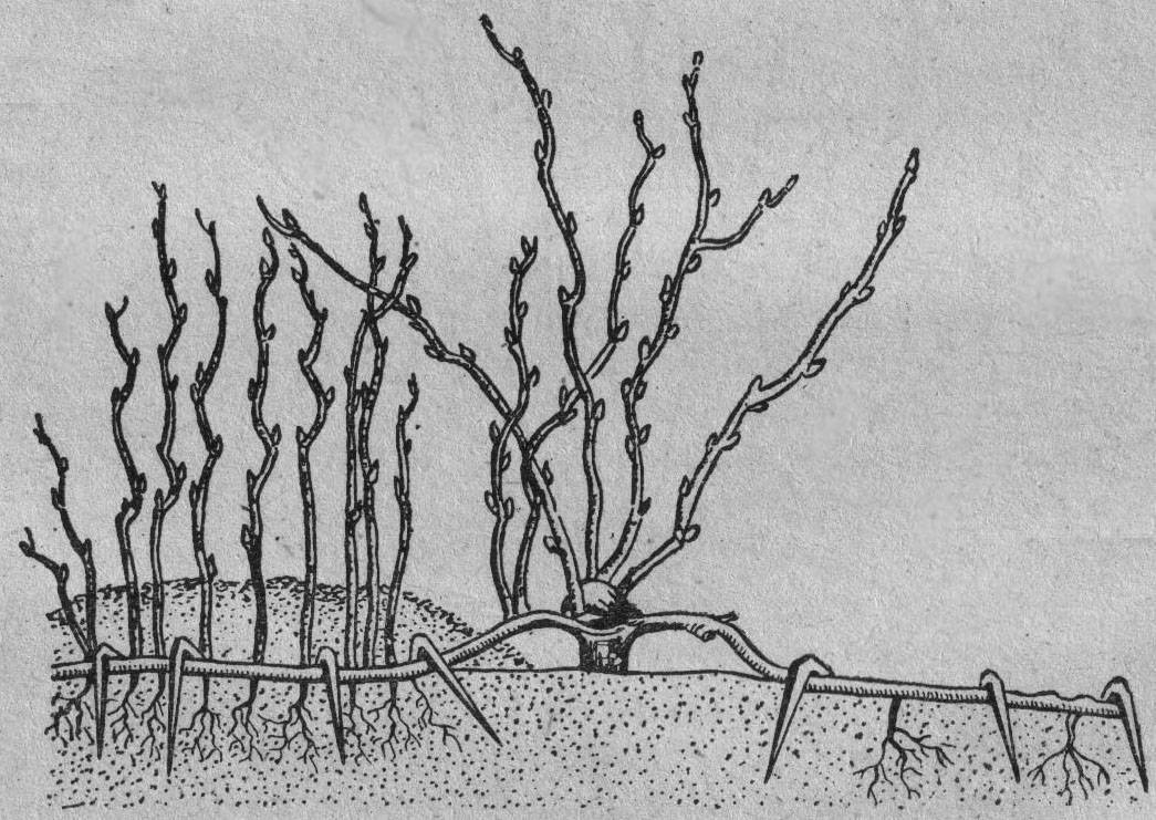 Засаждат се храсти с 3-4 издънки. Всяка година се оставят да растат 4 нови клона, а останалите се отрязват. С течение на времето старите издънки, които започват да плододават зле, се премахват напълно.