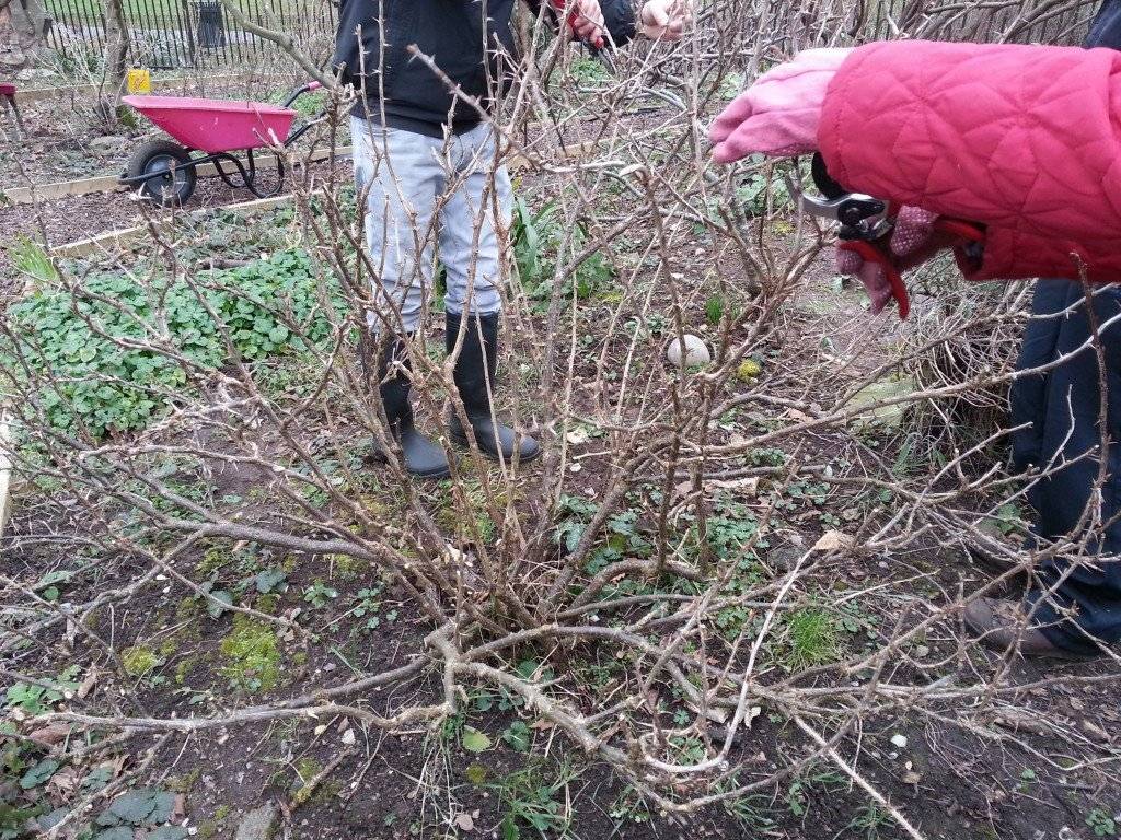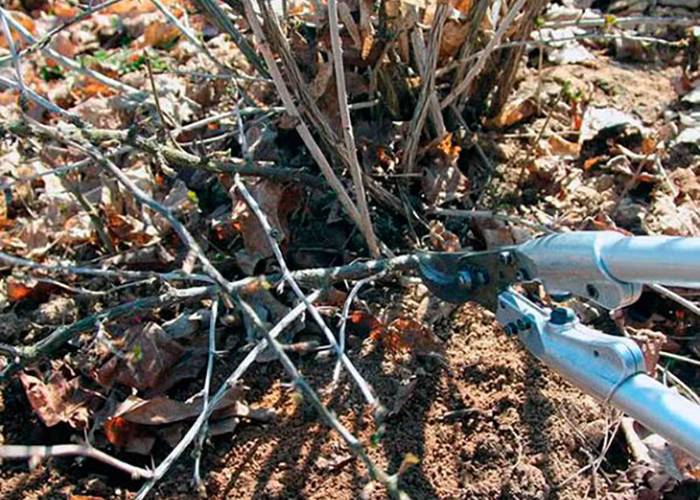 Изрязаните клони почерняха и изсъхнаха през зимата. Ако е необходимо, храстът се разрежда, премахвайки усукани, слаби, счупени издънки.В центъра не трябва да има твърде много тънки издънки, както и енергични клони, които няма да дадат добра реколта.