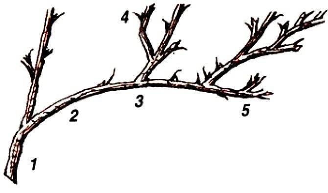 - През пролетта клоните от миналата година са вързани на гроздове от 4-5 парчета.