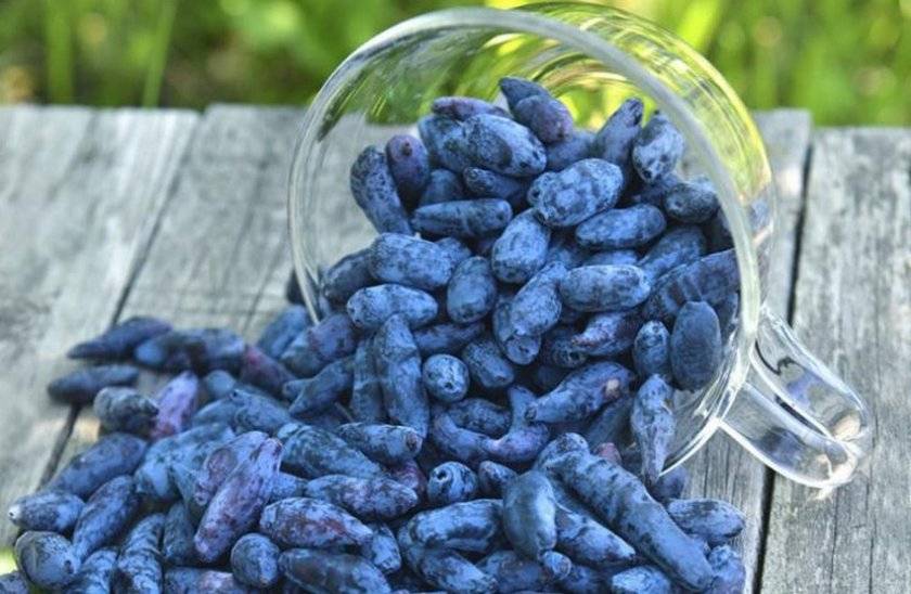 Формата на плодовете със синьо-виолетова буциста кожа със синкав цвят е кана-подобна или вретеновидна, удължена. Теглото на плодовете е 1-1,5 g всяка, а дължината им е до 3 см. Вкусът е сладко-кисел или сладък (дегустацията е 4,5 точки), ароматът е забележим и приятен.