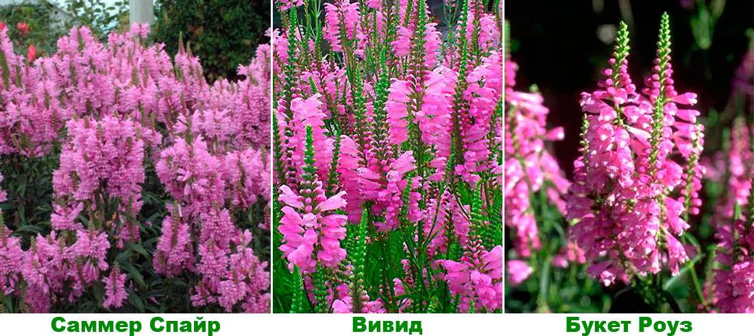 Em condições de paisagem, apenas um tipo de fisostegia é cultivado - virginiana. Esta flor distingue-se por caules retos, ligeiramente ramificados, cuja altura chega a 1 m. Nos caules encontram-se folhas opostas retilíneo-lanceoladas de tom esmeralda claro. As flores são coletadas em uma inflorescência densa e vêm nos seguintes tons: