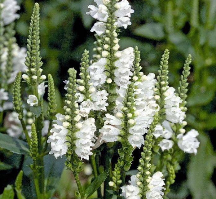 - Alba. O perene cresce até 1 m de altura, flores com grandes flores brancas. Na physostegia Alba, as folhas são lisas no meio e serrilhadas nas bordas;
