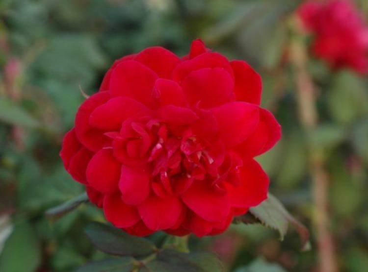 Evelyn Fison é considerada uma das roseiras mais antigas que se espalham. Suas pétalas vermelhas brilhantes, escurecidas nas bordas, não desbotam sob a influência do sol e são resistentes à chuva.