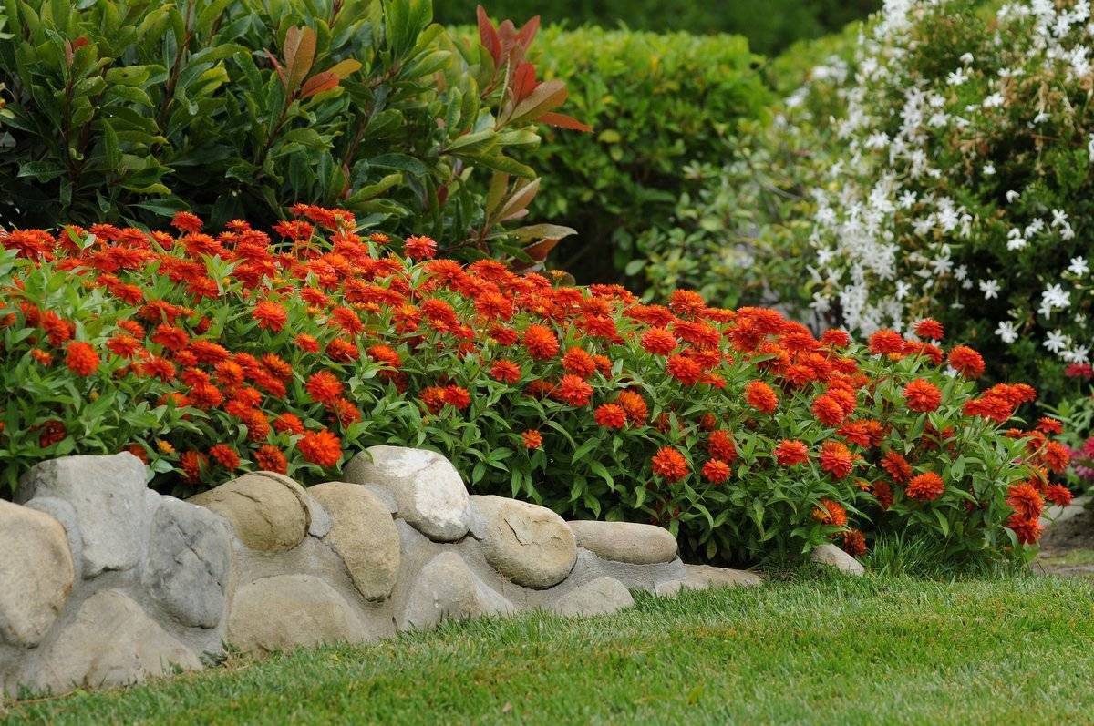 Așa cum am menționat mai devreme, pentru a decora chenarele sunt utilizate zinnii subdimensionate. Există o varietate incredibilă de soiuri.