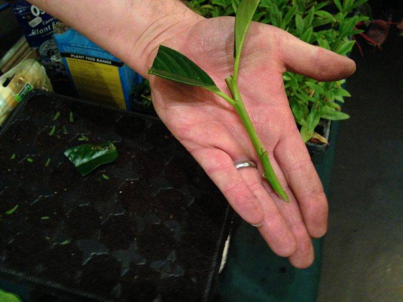 - За да вкорените резниците, вземете подготвен субстрат (вермикулит + почва за сукуленти или пясък + почва), изсипете го в саксия и задълбочете издънките в него с 2-2,5 см.