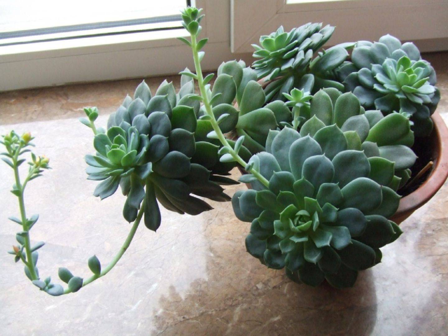 Защо едно цвете става дълго и непривлекателно, не всеки знае. Тази ситуация обикновено се случва през зимата. Разтягането на растението се дължи на липсата на слънце. През този период Echeveria често става като коледно дърво. Ситуацията може да бъде коригирана чрез прехвърляне на саксията на добре осветена перваза на прозореца. Ако това не помогне, е важно да осигурите на цветето постоянна изкуствена светлина.