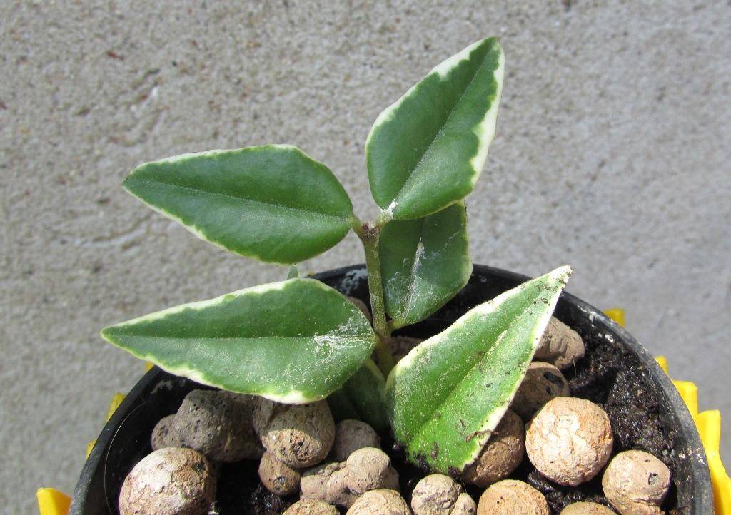 Hoya Lanceolata ssp. Бела cv. Албомаргината е известна със своите листа, които имат светли ръбове.