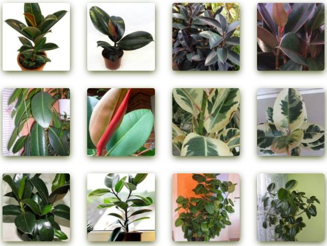 - различни сортове едролистни и дребнолистни фикуси на Бенджамин с увиснали клони и гъсто разположени листа;