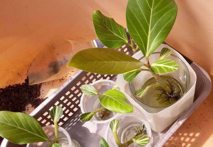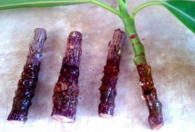 Уникалността на отглеждането на фикуси е, че тези растения отделят растителен сок. Ето защо, преди вкореняване, обърнете внимание на факта, че резниците могат да бъдат засадени, след като млякото престане да се отделя от растителните тъкани.