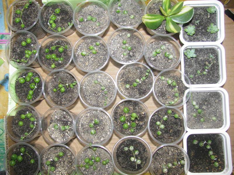 Senecio rowleyanus има малка коренова система, което прави саксията широка, но не дълбока. На дъното на контейнера се полага дренажен слой от фин чакъл или експандирана глина.
