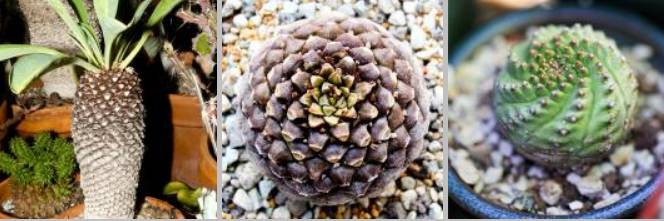 - Euphorbia caput medusae (Глава на Mmedusa) - засадени във висящи саксии, за да създадат ефекта на висящи пипалови клони.