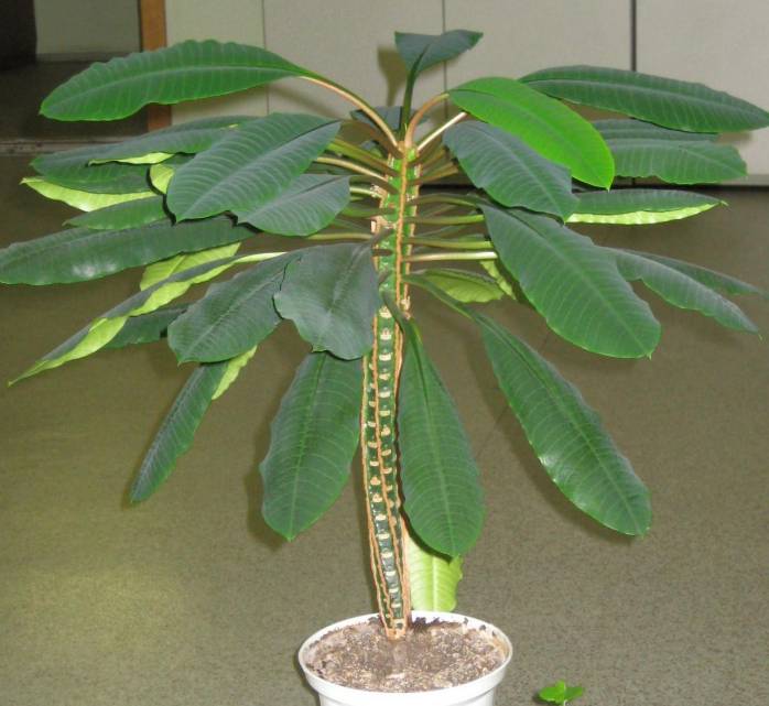 Семейство Euphorbia включва огромни дървета, растящи в тропически гори, тревисти растения от умерените ширини, бодливи храсти и нискорастящи дървета, живеещи в пустини. Стайните видове от рода Euphorbia са хибриди и сортове, които се различават по формата и цвета на стъблата, листата и начините за грижа за тях.