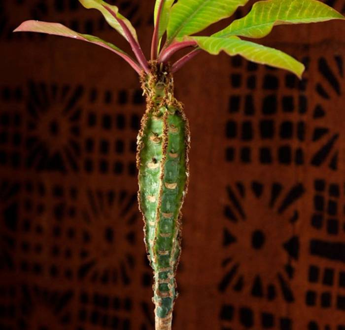 Не напразно личината се сравнява с кактус. Всъщност това е сукулент - сочно растение, което натрупва течност в тъканите си. Класификаторите са поставили рода Euphorbia leuconeura в семейство euphorbia. Името се дължи на факта, че вискозният сок, съдържащ се в растенията, принадлежащи към това семейство, е бял и наподобява мляко.