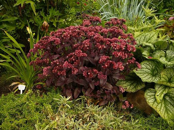 Някои сортове имат интересен нюанс на листата, а не само на цветята. Например тази каменна култура е червенолистна. И sedum Magnificent изглежда добре в почти всеки ъгъл на сайта.