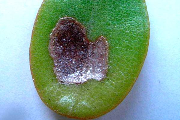 - Ножница - появата на лепкави петънца с изпъкнала повърхност върху листата и издънките показва нападението на този вредител. Борбата с насекомите се извършва от Aktellik, Bankol, Aktara, Inta-Vir. Преди да използвате инсектициди, вредителите трябва да бъдат премахнати на ръка, като изтриете засегнатите места с памучен тампон, навлажнен с алкохол.