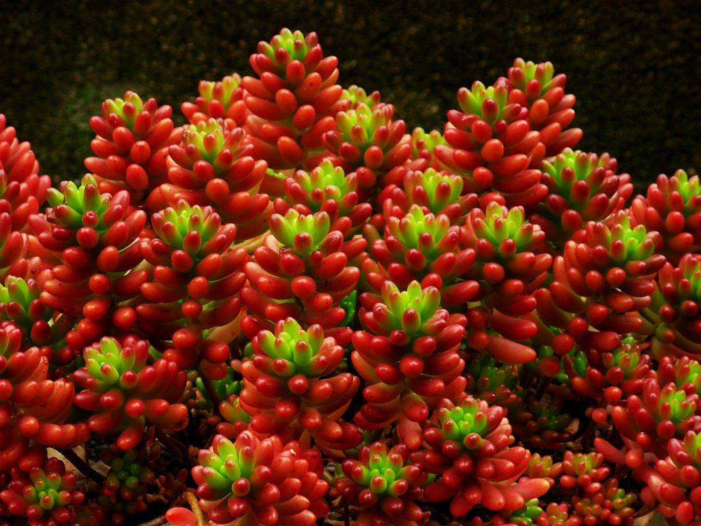 Sedum Rubrotinktum е необичайно растение поради нестандартния цвят на листата, те са бяло-розови. По време на размножителния период цветът се променя на червено-зелен. Отличителни черти са бавното развитие и растеж.