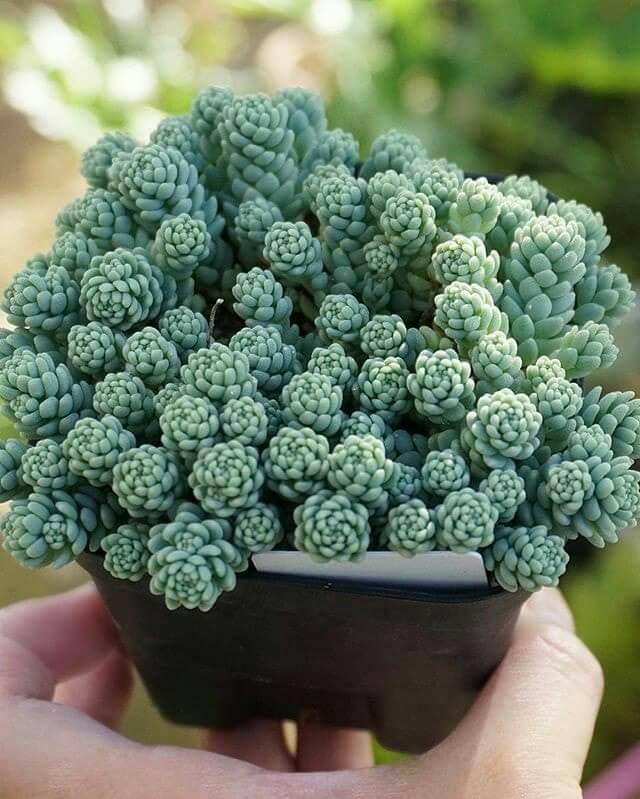 Sedum Burrito е растение джудже със стъбла, които се разпространяват по повърхността или висят надолу. Цветът на листата е маслинено, формата е кръгла, диаметърът е около 1 см. Има много общи черти с морганския седум.