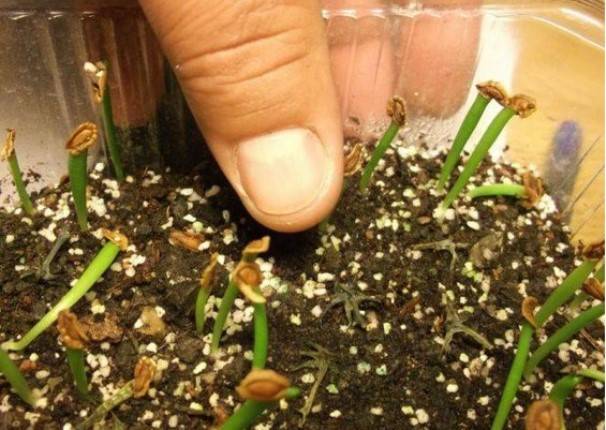 Всеки ден оранжерията се отваря за час за вентилация. След около 20-30 дни ще се появят разсад, след няколко седмици те ще се потопят в по-голям контейнер, засаждайки в субстрат за сукуленти.