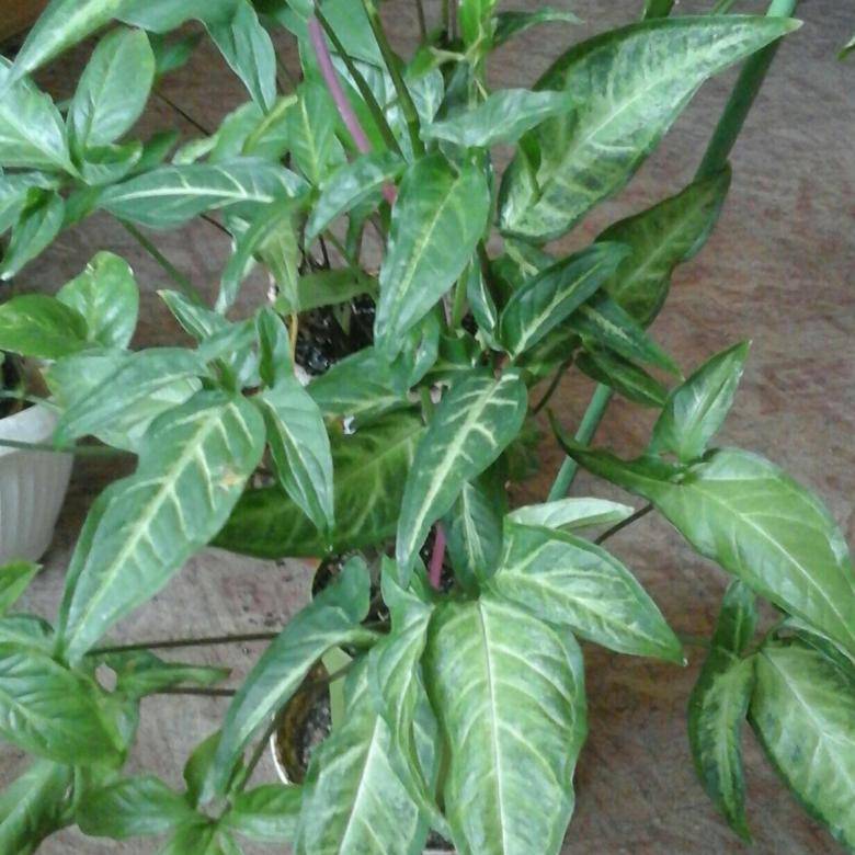 Сухият, горещ въздух в помещението причинява липса на влага. Върховете на листните плочи стават сухи. Липсата на хранителни вещества в почвата също се отразява на състоянието на листата: тя става по-малка, става жълта и изсъхва. Сингониумът не обича излагането на пряка слънчева светлина. Продължителното излагане на слънце намалява яркостта на цвета на листата. Стават плитки и бледи.
