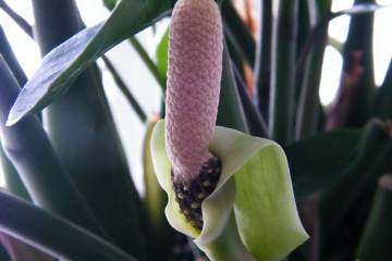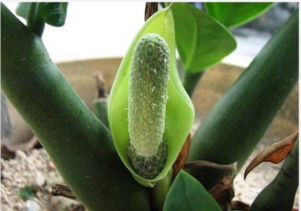 За цъфтежа растението трябва да организира подходящите условия. Zamiokulkas цъфти през лятото и пролетта. За да сте сигурни, че дървото ви цъфти, трябва да изложите саксията на слънчевата страна и да намалите напълно поливането. Трябва да сте наясно, че дори в естественото си местообитание растението не цъфти често.