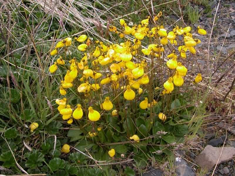 Calceolaria ดอกเดียวคืออะไร (lat. Calceolaria Uniflora) หรือรองเท้าแตะของผู้หญิง