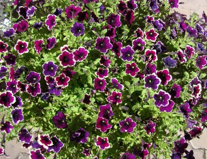 พิทูเนียแบบเรียงซ้อนเป็นพันธุ์ย่อยของแอมเพิลลัส สามารถปลูกได้ไม่เพียง แต่ในกระถางแขวนเท่านั้น แต่ยังสามารถปลูกในแปลงดอกไม้ได้อีกด้วย