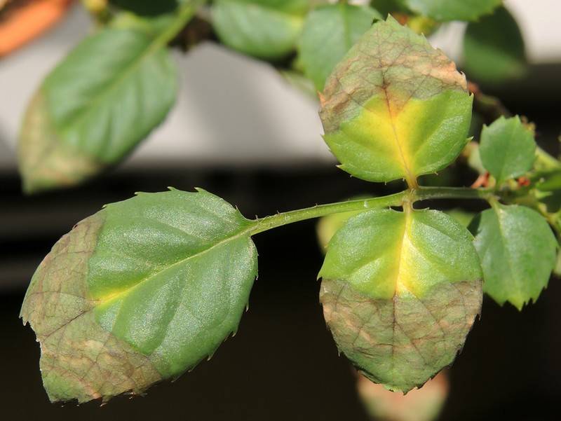 - หากดอกกุหลาบขาดไนโตรเจนใบจะซีดมีริ้วสีเหลืองปรากฏขึ้น
