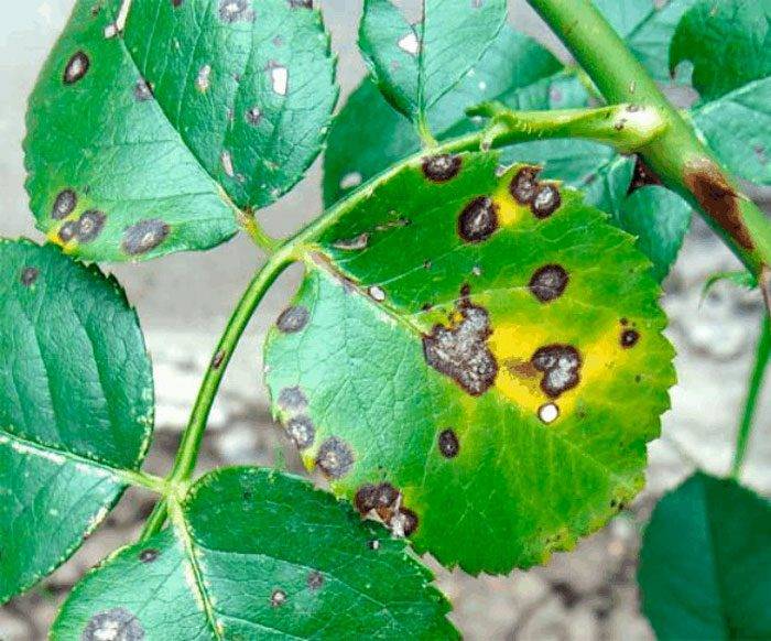 - จุดดำ. เมื่อการติดเชื้อนี้ปรากฏขึ้นจะสังเกตเห็นสีเหลืองของใบและการก่อตัวของจุดด่างดำบนใบ พืชที่เป็นโรคไม่ทนต่อฤดูหนาวได้ดีและเติบโตด้วยความยากลำบาก ยาฆ่าเชื้อราในระบบใด ๆ จะช่วยในการรับมือกับพยาธิวิทยา