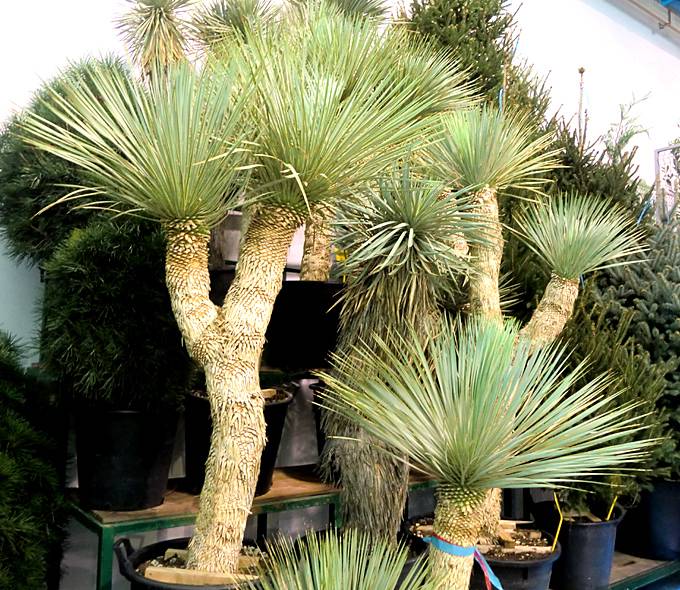 Southern Yucca (Y. australis) ปรากฏในยุโรปกลางศตวรรษที่ 19 ต้นไม้ชนิดนี้เติบโตได้ถึง 10 เมตรและมีเส้นผ่านศูนย์กลางของลำต้นได้ 1 เมตรส่วนบนแตกกิ่งก้านสาขามาก ใบยาว 30 ซม. ตั้งอยู่ใกล้กัน ตามขอบของแผ่นใบมีสีเขียวเข้ม กลีบดอกไม้เป็นครีม
