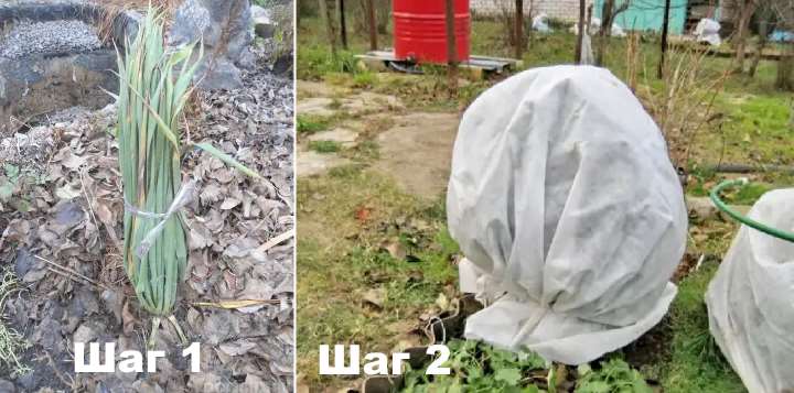 - พุ่มไม้ถูกปกคลุมด้วยวัสดุฉนวนอาจเป็นฟางกล่องกระดาษแข็ง agrofibre